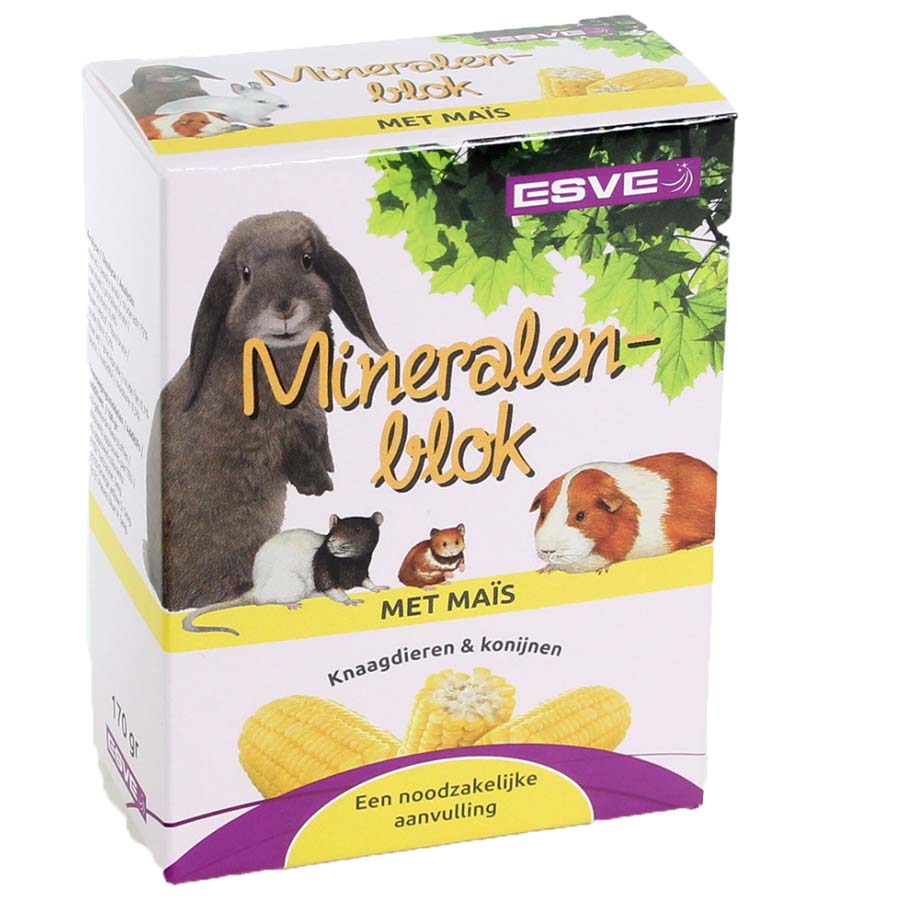 Esve Mineralen blok is een smakelijke snack, ideaal voor knaagdieren en konijnen. Het voorziet in de natuurlijke knaagbehoefte, versterkt de botstructuur en draagt bij aan een mooie vacht. Deze knaagsteen met mais zit boordevol vitaminen en mineralen en zorgt voor een natuurlijke gebitsslijtage, waardoor de kans op gebitsproblemen afneemt.