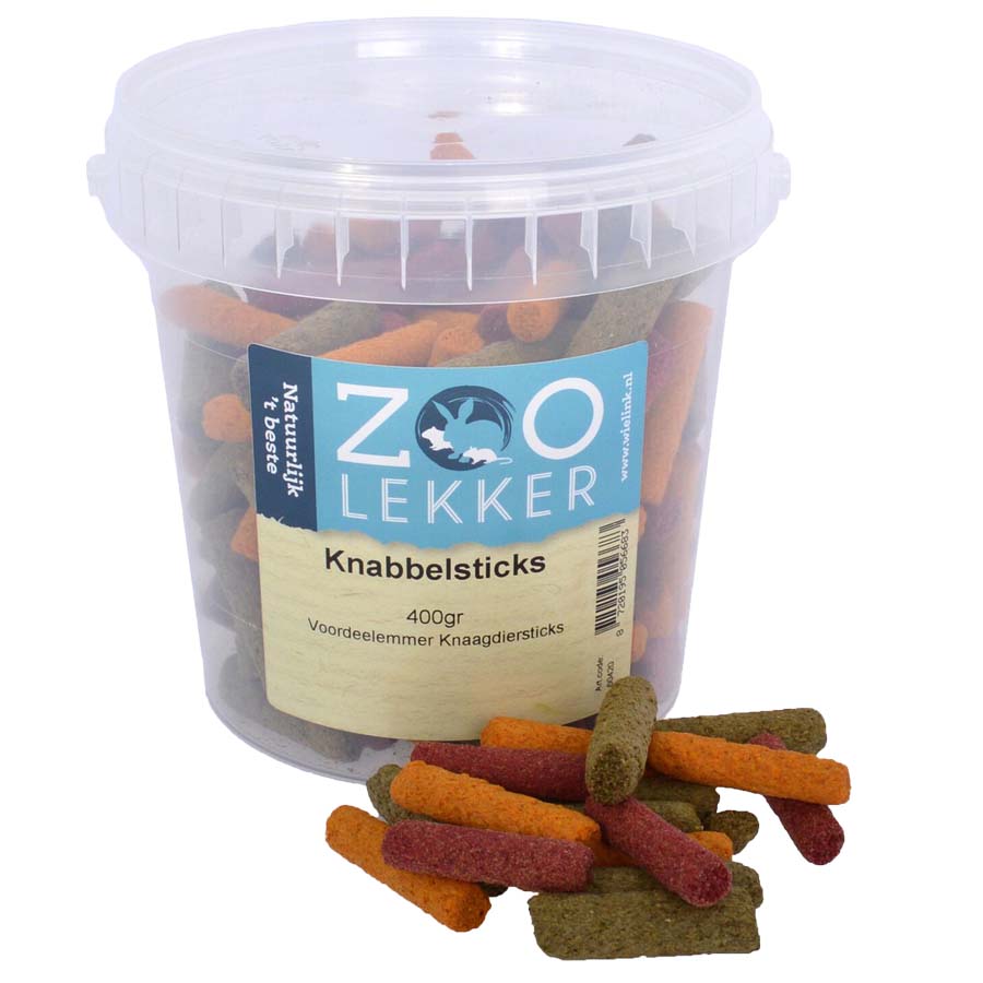 Deze knabbelsticks zijn een heerlijk tussendoortje voor knaagdieren en konijnen. Verpakt in een handig emmertje met deksel.