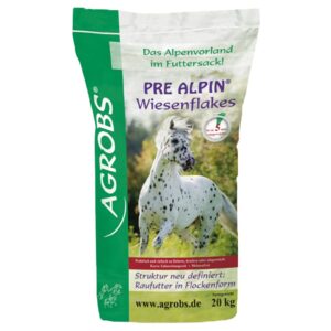 PRE ALPIN® WIESENFLAKES® is een nieuw product van Agrobs, dat dankzij innovatieve fabricageprocessen een hoogwaardig, gemakkelijk te voeren ruwvoerproduct is. PRE ALPIN® WIESENFLAKES® zijn een ideale hooivervanger. Dankzij de vlokachtige vorm kan er ongecompliceerd gevoederd worden, als aanvulling op het basisvoer of om te mengen in het bestaande krachtvoer. Hierdoor krijgt het krachtvoer meer structuur en wordt de dagelijkse opname van hoogwaardige ruwe celstof voor het paard verhoogd. Tegelijkertijd moet het paard meer kauwen en wordt het dus aangemoedigd langzamer te eten. De verhoogde speekselproductie die ermee gepaard gaat, leidt tot een betere vertering van het krachtvoer en dient tegelijkertijd voor het behoud van een gezonde darmflora.