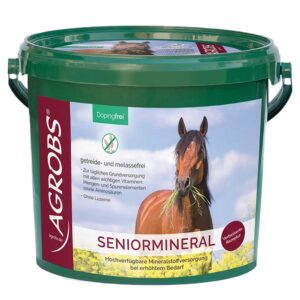 Agrobs Seniormineral voorziet paarden tot op hoge leeftijd van alle essentiële micronutriënten. Hoe ouder een paard wordt, hoe groter de kans op ouderdomsproblemen. Deze omvatten bijvoorbeeld het onvoldoende versnipperen van voedercomponenten als gevolg van verslechterende tandsubstantie of zelfs de verminderde opnamecapaciteit en synthese van voedingsstoffen in de darm. Stofwisselingsziekten zoals PPID (Equine Cushing’s Syndrome) komen vaker voor met het ouder worden en leiden tot een veranderde stofwisselingsfunctie.